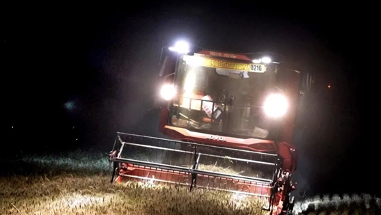 6月1日晚上10點,在駐馬店市遂平縣沈寨鄉(xiāng)前薛村的麥田里,以往寂靜的夜晚被收割機轟鳴聲占據(jù)。春豪正駕駛著雷沃谷神忙碌搶收,收割機的大燈照亮了前薛村的夜空。